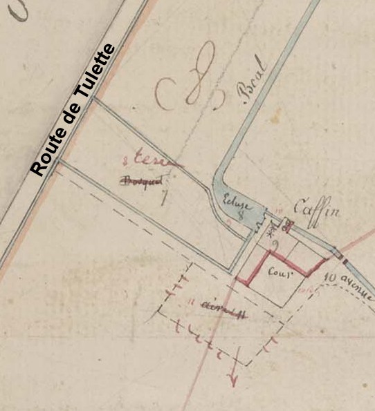 Localisation des deux moulins "Caffin" et du moulin Fabre.